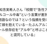 知念実希人さん『校閲で“急性アルコール中毒”という言葉が差別用語なのでは?という指摘を受けて頭を抱えている…たぶんアルコール依存症を“アル中”と呼ぶことと混同している』