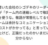 昔いた会社のシゴデキのリーダーが「チーム内の連絡レベルで敬語を使うな。敬語が常態化してるチームは余計なコミュニケーションコストがかかってる」と言っていたけど、正論だったのかいまだに分からない