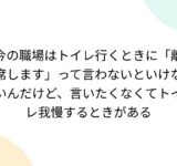 今の職場はトイレ行くときに「離席します」って言わないといけないんだけど、言いたくなくてトイレ我慢するときがある