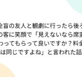 全盲の友人と観劇に行ったら後ろの客に笑顔で「見えないなら席変わってもらって良いですか?料金は同じですよね」と言われた話
