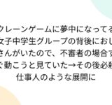クレーンゲームに夢中になってる女子中学生グループの背後におじさんがいたので、不審者の場合すぐ動こうと見ていた→その後必殺仕事人のような展開に