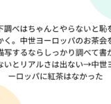 下調べはちゃんとやらないと恥をかく。中世ヨーロッパのお茶会を描写するならしっかり調べて書かないとリアルさは出ない→中世ヨーロッパに紅茶はなかった