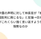 中露の声明に対して林長官が「他国批判に興じるな」と反論→日本がこれくらい強く言い返すような情勢なのか