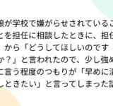 娘が学校で嫌がらせされていることを担任に相談したときに、担任から「どうしてほしいのですか?」と言われたので、少し強めに言う程度のつもりが「早めに潰しときたい」と言ってしまった話