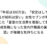 「年収は300万台」「安定はしてるが給料は安い」女性セブンが報じた「皇室の生活費を着服して懲戒免職になった宮内庁職員の裏話」が複雑な気持ちになる