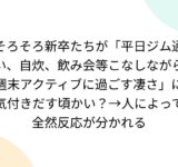 そろそろ新卒たちが「平日ジム通い、自炊、飲み会等こなしながら週末アクティブに過ごす凄さ」に気付きだす頃かい?→人によって全然反応が分かれる