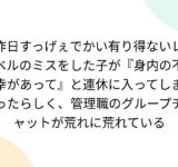 昨日すっげぇでかい有り得ないレベルのミスをした子が『身内の不幸があって』と連休に入ってしまったらしく、管理職のグループチャットが荒れに荒れている