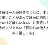 普段は一人が好きなくせに、本当に辛いことがあって誰かに相談したいけど誰もいない、と実感した時がマジで辛い「見知らぬ他人やAIに話してる」