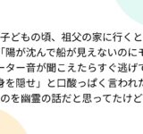 子どもの頃、祖父の家に行くと「陽が沈んで船が見えないのにモーター音が聞こえたらすぐ逃げて身を隠せ」と口酸っぱく言われたのを幽霊の話だと思ってたけど
