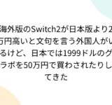 海外版のSwitch2が日本版より2万円高いと文句を言う外国人がいるけど、日本では1999ドルのグラボを50万円で買わされたりしてきた