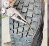 靴を手入れ中、数日前に災害現場で「デカい釘を真上から」踏んでたことに気づく…ぶっ刺さった釘の長さにドン引きしつつ「道具の重要性」が骨身にしみる