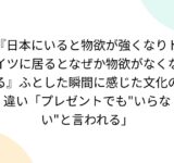 『日本にいると物欲が強くなりドイツに居るとなぜか物欲がなくなる』ふとした瞬間に感じた文化の違い「プレゼントでも"いらない"と言われる」