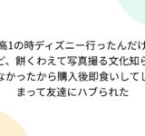 高1の時ディズニー行ったんだけど、餅くわえて写真撮る文化知らなかったから購入後即食いしてしまって友達にハブられた