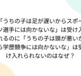 「うちの子は足が遅いからスポーツ選手には向かないな」は受け入れるのに「うちの子は頭が悪いから学歴競争には向かないな」は受け入れられないのはなぜ?