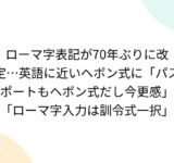 ローマ字表記が70年ぶりに改定…英語に近いヘボン式に「パスポートもヘボン式だし今更感」「ローマ字入力は訓令式一択」