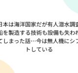 日本は海洋国家だが有人潜水調査船を製造する技術も設備も失われてしまった話…今は無人機にシフトしている