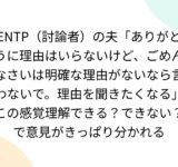 ENTP(討論者)の夫「ありがとうに理由はいらないけど、ごめんなさいは明確な理由がないなら言わないで。理由を聞きたくなる」この感覚理解できる?できない?で意見がきっぱり分かれる
