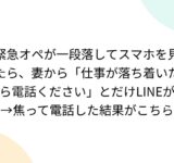 緊急オペが一段落してスマホを見たら、妻から「仕事が落ち着いたら電話ください」とだけLINEが→焦って電話した結果がこちら
