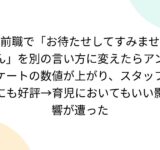 前職で「お待たせしてすみません」を別の言い方に変えたらアンケートの数値が上がり、スタッフにも好評→育児においてもいい影響が遭った