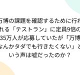 万博の課題を確認するために行われる「テストラン」に定員9倍の35万人が応募していたが「万博なんかタダでも行きたくない」という声は嘘だったのか?
