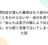 認知症が進んだ義母はもう自分のことをわからないが…自分を見ての「あんたは息子の嫁によう似とる」から続く言葉で泣いてしまった話