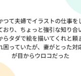 かつて夫婦でイラストの仕事をしており、ちょっと強引な知り合いからタダで絵を描いてくれと頼まれ困っていたが、妻がとった対応が目からウロコだった