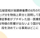 石破首相が高額療養費の8月の引上げ分を物価上昇分と説明して医療従事者がブチギレた話…医療費は物価の影響が出ないよう国が値段を決めている事実はどこに