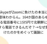 SkypeがZoomに負けたの本当に意味わからん。164か国のあらゆる電話番号に1分5円で北朝鮮にすら電話できるんだぞ?→なぜ負けたのかをめぐって議論に