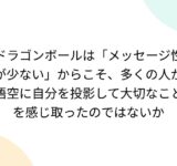 ドラゴンボールは「メッセージ性が少ない」からこそ、多くの人が悟空に自分を投影して大切なことを感じ取ったのではないか