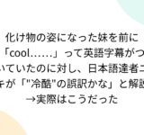 化け物の姿になった妹を前に「cool……」って英語字幕がついていたのに対し、日本語達者ニキが「"冷酷"の誤訳かな」と解説→実際はこうだった