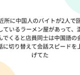 近所に中国人のバイトが2人で回しているラーメン屋があって、混んでくると店員同士は中国語の会話に切り替えて会話スピードを上げてた