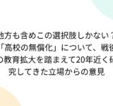 地方も含めこの選択肢しかない?「高校の無償化」について、戦後の教育拡大を踏まえて20年近く研究してきた立場からの意見