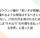 元ラウンジ嬢が「若い子が夜職に憧れるような発信はするべきじゃない。1700万円を貢がれるためには”それなり”の代償を支払ってる世界」と語った話