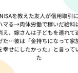 NISAを教えた友人が信用取引にハマる→肉体労働で稼いだ給料は消え、嫁さんは子どもを連れて逃げた…彼は「金持ちになって家族を幸せにしたかった」と言っていた