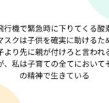 飛行機で緊急時に下りてくる酸素マスクは子供を確実に助けるため子より先に親が付けろと言われるが、私は子育ての全てにおいてその精神で生きている