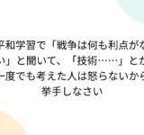 平和学習で「戦争は何も利点がない」と聞いて、「技術……」とか一度でも考えた人は怒らないから挙手しなさい