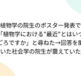 植物学の院生のポスター発表で「植物学における"最近"とはいつごろですか」と尋ねた→回答を聞いた社会学の院生が震えていた