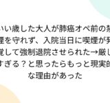 いい歳した大人が肺癌オペ前の禁煙を守れず、入院当日に喫煙が発覚して強制退院させられた→厳しすぎる?と思ったらもっと現実的な理由があった
