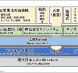 宗教観のシステム化「日本人は神道BIOSの上に仏教OSが乗り、その上に仏教やキリスト教の宗教アプリが動いてる」をイメージ図化したらわかりやすい話…「神道ではなく八百万BIOS」「スパモンがいる」など
