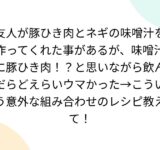 友人が豚ひき肉とネギの味噌汁を作ってくれた事があるが、味噌汁に豚ひき肉!?と思いながら飲んだらどえらいウマかった→こういう意外な組み合わせのレシピ教えて!