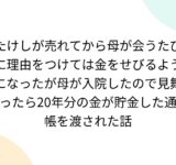 たけしが売れてから母が会うたびに理由をつけては金をせびるようになったが母が入院したので見舞ったら20年分の金が貯金した通帳を渡された話