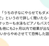 「うちの子なにやらせてもダメで」というので詳しく聞いたら…サッカーも水泳もピアノもバスケも他にも2ヶ月以内で結果が出ないからやめさせてて恐怖した話
