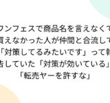 ワンフェスで商品名を言えなくて買えなかった人が仲間と合流して「対策してるみたいです」って報告していた「対策が効いている」「転売ヤーを許すな」
