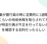 妻が銀行員の時に定期的に1週間くらいの有給休暇を取らされてたが特定行員が不正を行ってないかを確認する目的だったらしい