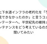 上下水道インフラの老朽化を「予見できなかったのか」と言うコメンテーターへ、半世紀先の維持メンテナンスをどう考えているのか聞いてみたい
