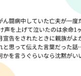 がん闘病中していた亡夫が一度だけ声を上げて泣いたのは余命1ヶ月宣告をされたときに親族がよかれと思って伝えた言葉だった話…何かを言うぐらいなら沈黙がいい