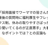 「採用面接でワーママの皆さんが最後の質問時に福利厚生やフレックス制、休みの取りやすさばっかり聞いてくるのが正直悪手」大事なポイントでは?との反論も