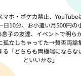 スマホ・ポケカ禁止、YouTubeは一日10分、お小遣い月500円の小5息子の友達、イベントで明らかに孤立しちゃってた→賛否両論集まる「どちらも両極端にならないといいかな」