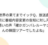 世界の果てまでイッテQ、放送直前に番組内容変更の告知に対し戸惑いの声「確かガンバレルーヤさんの韓国ツアーでしたよね」