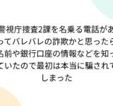 警視庁捜査2課を名乗る電話があってバレバレの詐欺かと思ったら名前や銀行口座の情報などを知っていたので最初は本当に騙されてしまった